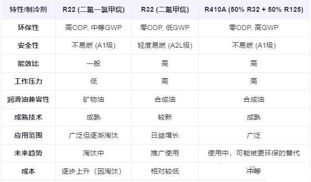 高效率:R410A的工作压力大约是R22的1.6倍,这使得它可以在相同温度下提供更高的蒸发温度,从而提高热交换器的效率。